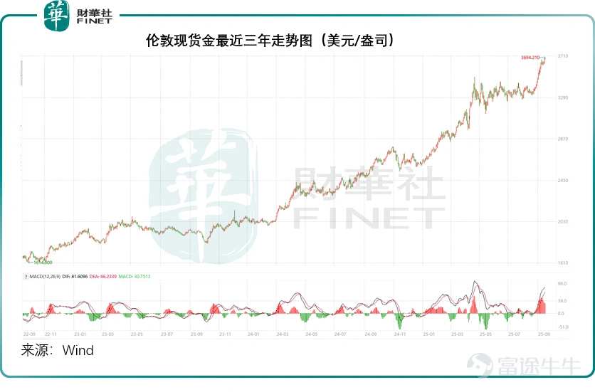 Data from Wind shows that London spot gold briefly surpassed USD 3,690 per ounce during the Asian trading session, hitting another record high at USD 3,694.21, and is currently trading at USD 3,688.21.