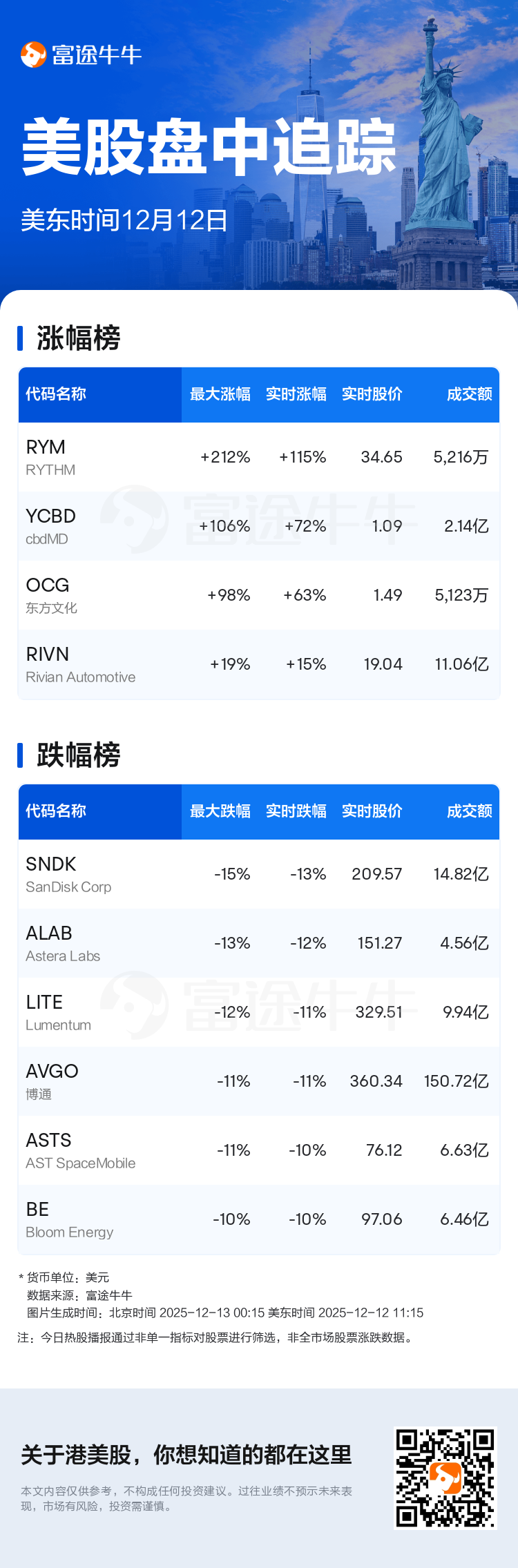 $RYTHM (RYM.US)$ shoots up 115.07% to $34.65 with a turnover of $52.16 million.