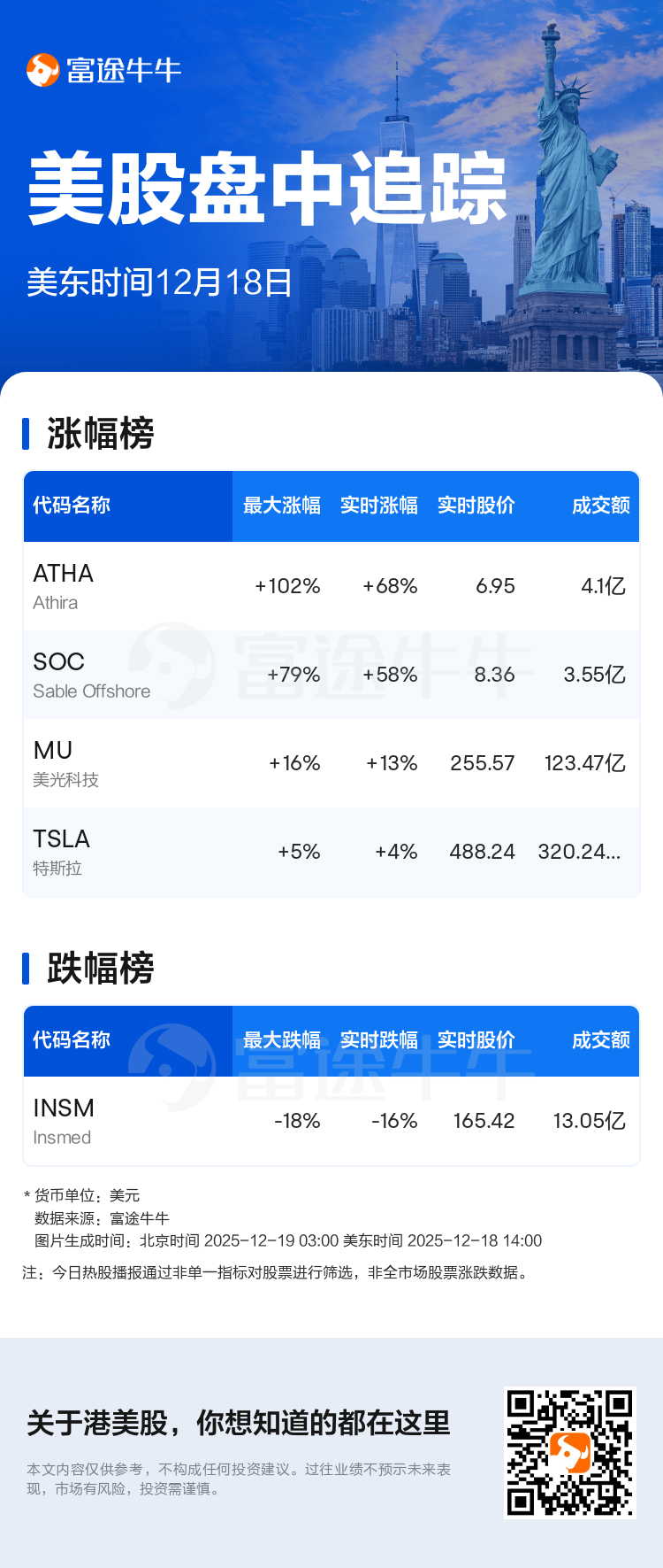 $Athira (ATHA.US)$ shoots up 68.07% to $6.95 with a turnover of $410.99 million.