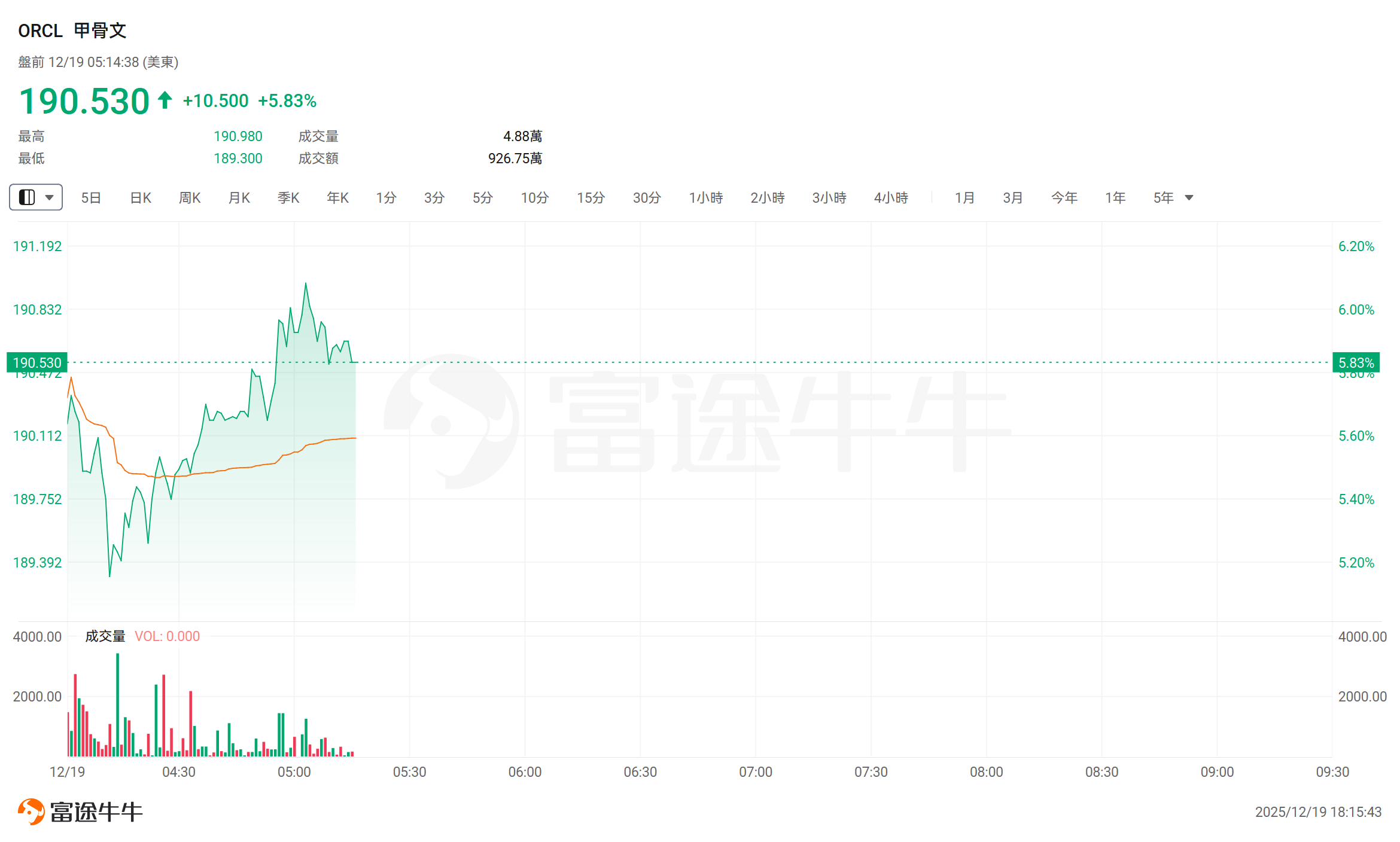 Affected by this, Oracle's pre-market price surged nearly 6%, latest at $190.53.