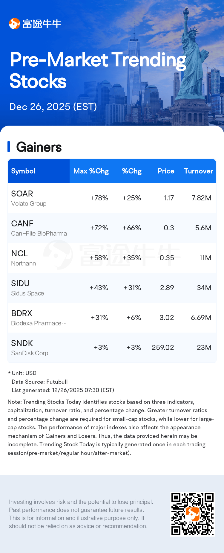 Trending Stocks Today identifies stocks based on three indicators, capitalization, turnover ratio, and percentage change. Greater turnover ratios and percentage change are required for small-cap stocks, while lower for large-cap stocks. The performance of major indexes also affects the appearance mechanism of Gainers and Losers. Thus, the data provided herein may be incomplete. Trending Stock Today is typically generated once in each trading session(pre-market/regular hour/after-market).