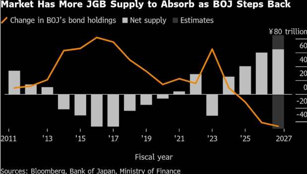 The Japanese government bond market is bracing for another challenging year as investors face the largest net increase in supply in over a decade.