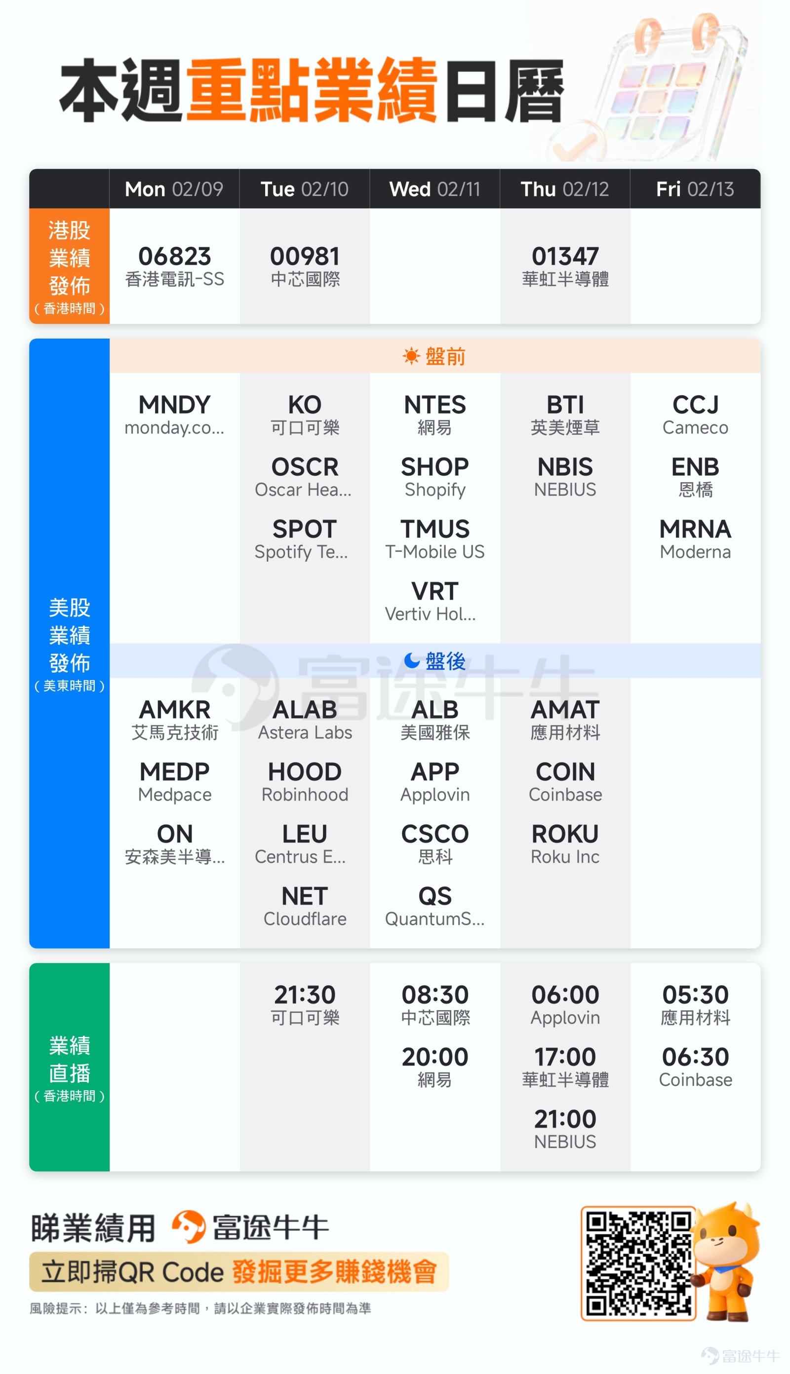 The earnings season for Hong Kong and US stocks continues! Companies such as SMIC, Coinbase, and CoreWeave are set to release their financial results sequentially.
