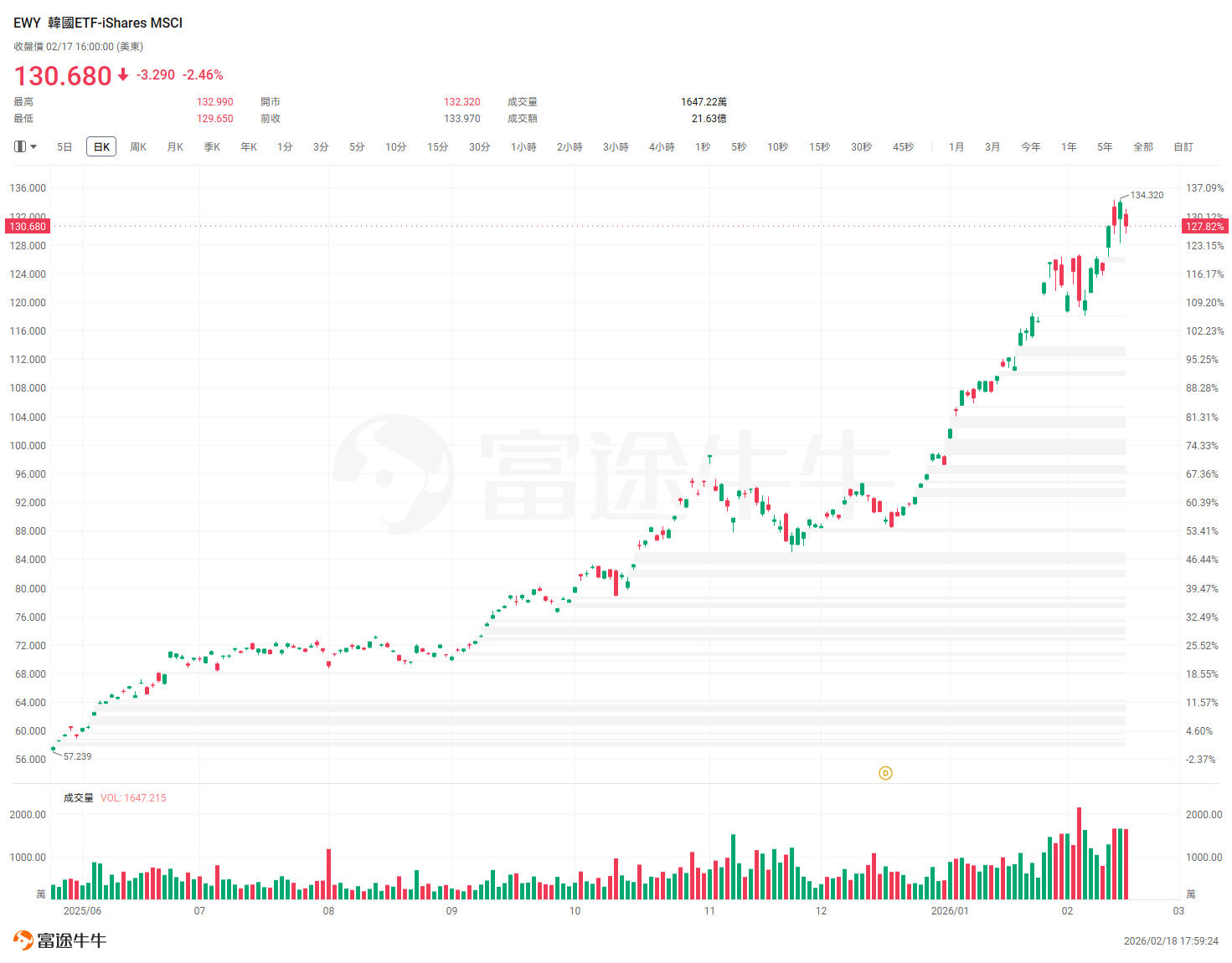 In the meantime, Tepper initiated a new position worth $182.3 million in $iShares MSCI South Korea ETF (EWY.US)$ This ETF primarily holds chip giants such as Samsung Electronics and SK Hynix, and it has surged 34% this year, hitting a new high last week, attracting investors seeking overseas AI beneficiaries.
