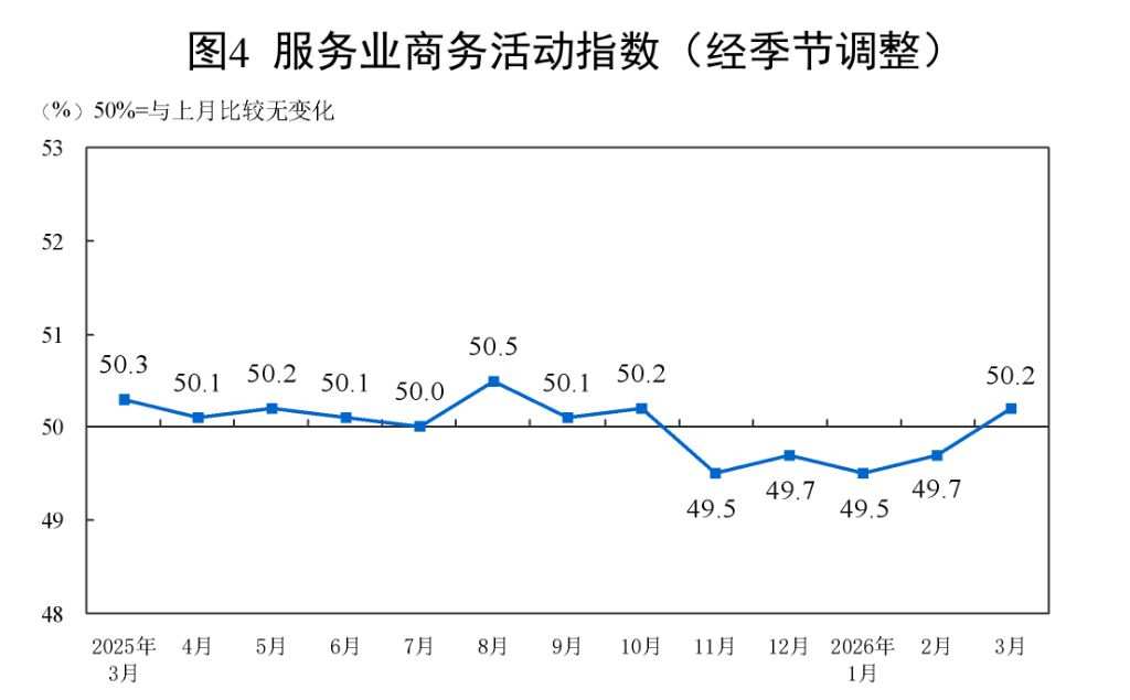 After operating below 50% for two consecutive months, China's manufacturing Purchasing Managers' Index (PMI) returned to the expansionary zone in March, indicating an improvement in manufacturing activity. The overall level of non-manufacturing sector activity also increased in March.