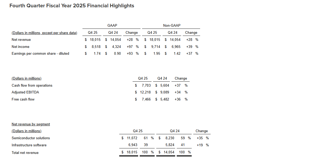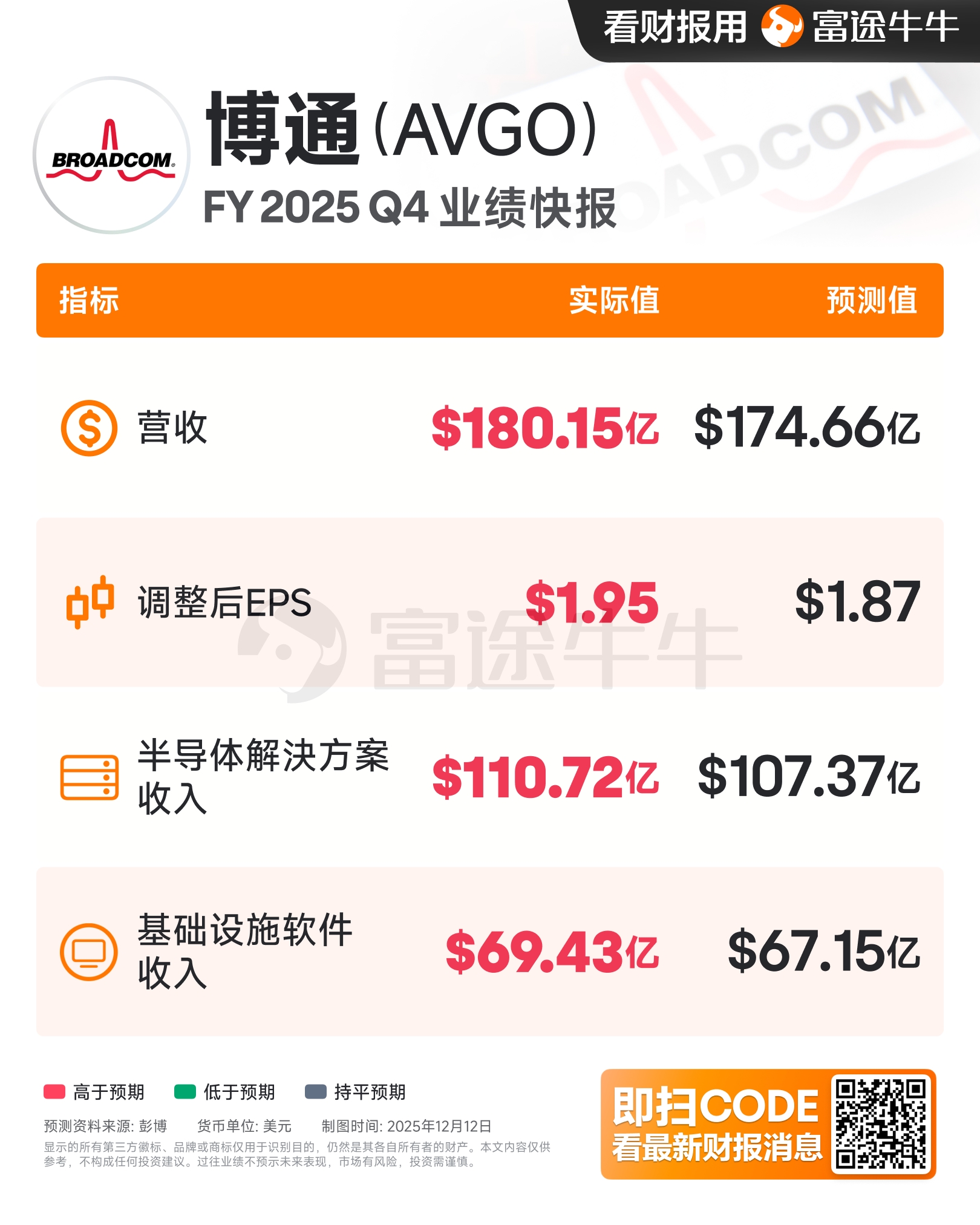 美东时间12月11日盘后,博通发布截止2025年11月2日的2025财年Q4财务业绩。