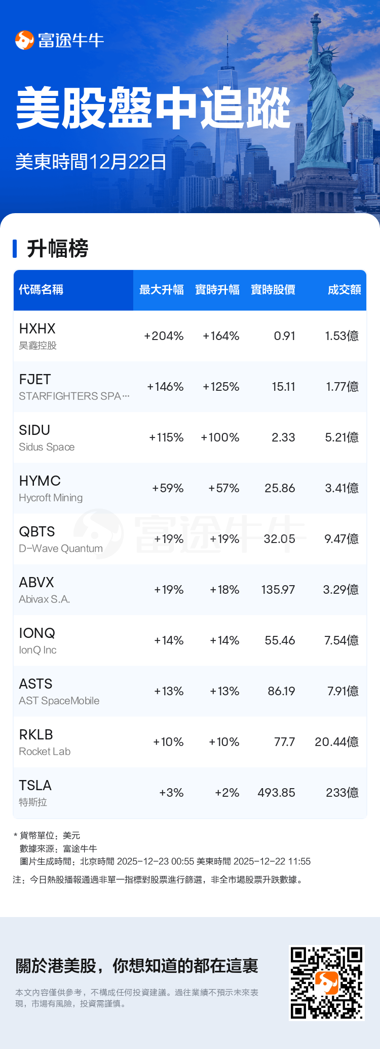 美東時間12月22日報道,以下為今日美股盤中熱門個股。