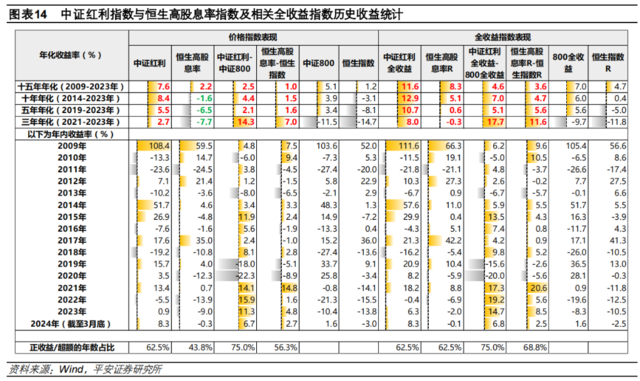 从2014年以来的近十余年长期视角来看,A股和港股的红利指数走势有正相关性,不过在2019年以来两地指数走势分化波动加大,A股相比港股呈现出收益弹性更高、波动更小的优势。