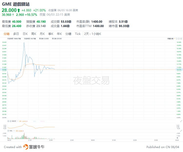 游戏驿站收盘涨超21%,报28美元/股,总市值98.33亿元,而就在美股开盘该股曾一度暴涨近70%,随后因消息面传闻有所回落。$游戏驿站 (GME.US)$当日成交额53.83亿美元,为纽交所交易额第三大的股票。不过,有“散户之王”之称的“咆哮小猫”Keith Gill似乎很坚定,在美股收盘后再次晒出账户截图,游戏驿站受此影响盘后继续涨超10%,报30.9美元/股。截至发稿,游戏驿站美股夜盘涨10.57%,此前一度涨超16%。