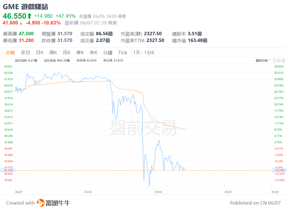 周五美股盘前,$游戏驿站 (GME.US)$提前发布Q1业绩,同时申请出售最多7500万股A类股票。该公司此前已出售4500万股股票,总收益约为9.334亿美元。受此消息影响,游戏驿站一度下挫超18%,而此前一度涨近36%。