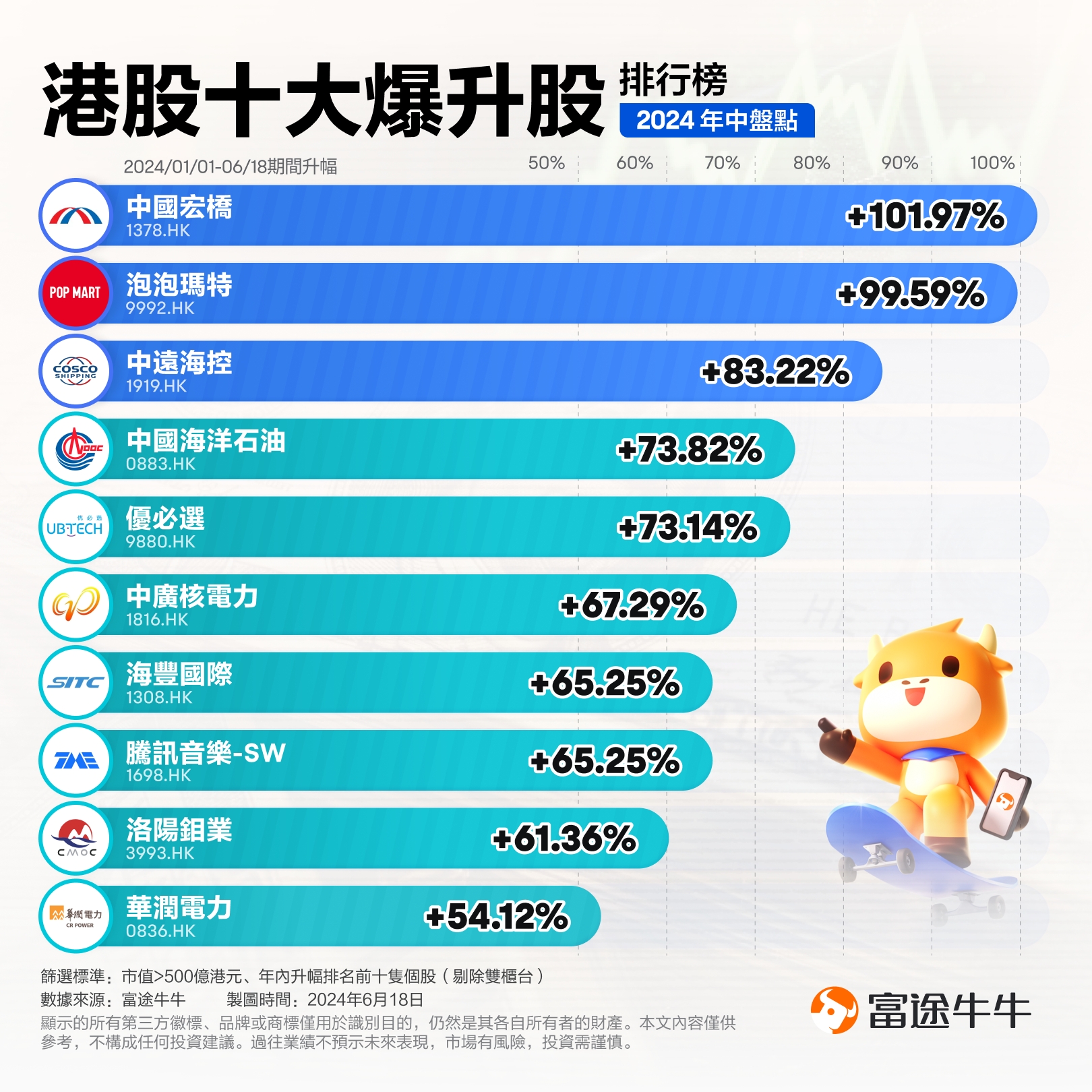 3、“中特估”持续发力,高息标的获追捧!$中远海控 (01919.HK)$今年飙涨超83%,$中国海洋石油 (00883.HK)$涨近74%,$中广核电力 (01816.HK)$涨超67%。