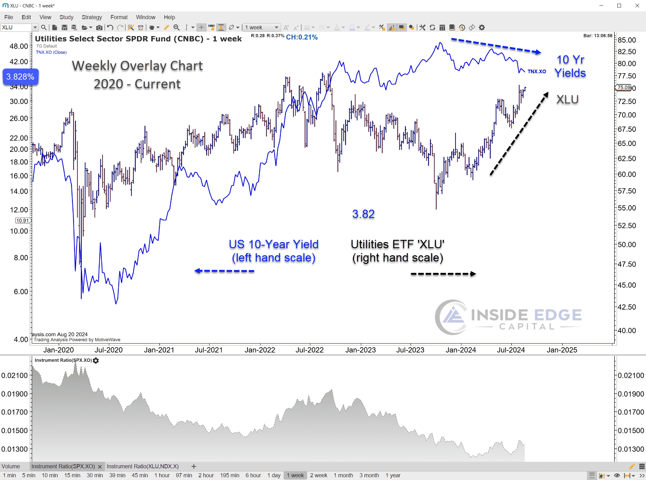 随着美联储9月降息近乎板上钉钉,10年期国债的收益率下降至大约3.8%。这一变化使得公用事业股票的分红收益相对更具吸引力,为投资者提供了一个在低利率环境下的替代性投资选择。