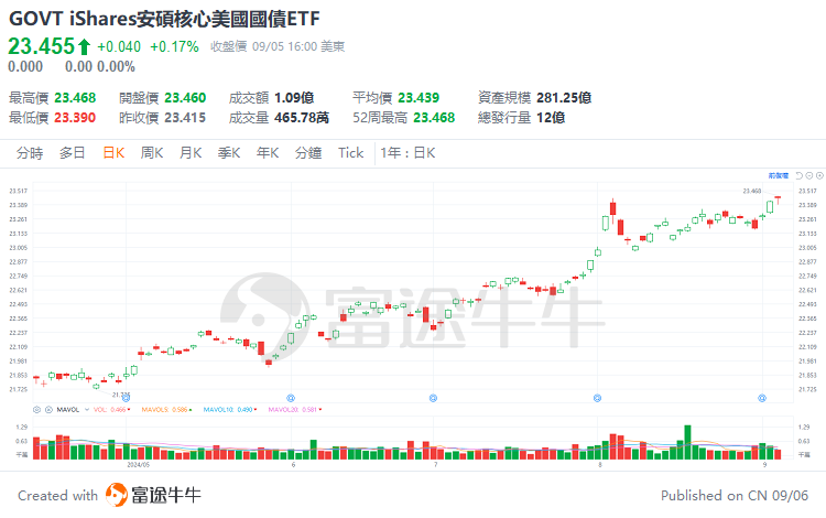 2、 $iShares安硕核心美国国债ETF (GOVT.US)$ :该ETF是一只全面覆盖整个美国国债曲线上各类期限国债的ETF,旨在反映美国国债市场的整体表现。通过投资不同年期的国债,GOVT能够为投资者提供对美国国债市场全面的风险暴露,有效分散不同期限的风险。