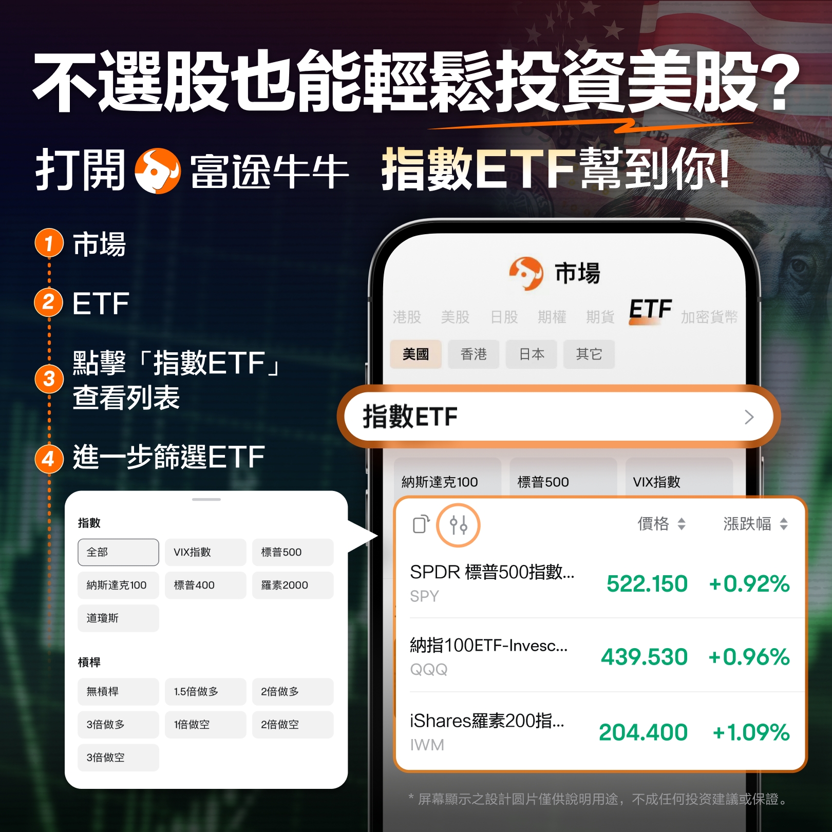不选股也能轻松投资美股?打开富途牛牛,指数ETF帮到你。市场>ETF>指数ETF>拣出心水ETF,定时定额入市,把握美股小盘ETF投资机会!