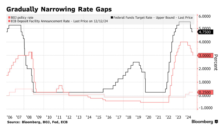 美联储将于12月19日结束为期两天的会议,预计届时其将再次降息25个基点。美联储对政策前景的任何强硬态度,加上日本央行的进一步鸽派立场,都可能令日元承压。知情人士说,日本央行官员只有在仔细评估数据和金融市场后才会做出最终决定。