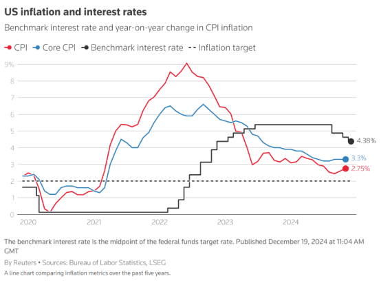 他补充道,考虑到潜在的贸易关税带来的通胀再抬头的风险,以及移民放缓给劳动力市场带来的压力,预期2025年只会再降息两次,现在看来是合理的。