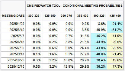 根据CME的FedWatch工具,市场预期明年1月和3月将维持利率不变,直到5月才重启降息,概率也只有46.2%。