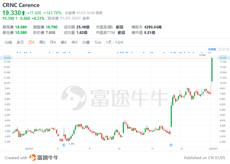 毫无疑问,AI会是今年所有品类的热门概念,无论汽车还是电脑,新一代产品卖点里都会有AI。鉴于在刚刚过去的周五,汽车语音AI开发商 $Cerence (CRNC.US)$ 宣布与 $英伟达 (NVDA.US)$ 合作后迎来股价翻倍的盛况,可以理性期待AI相关的公告依然会是下周市场热点。