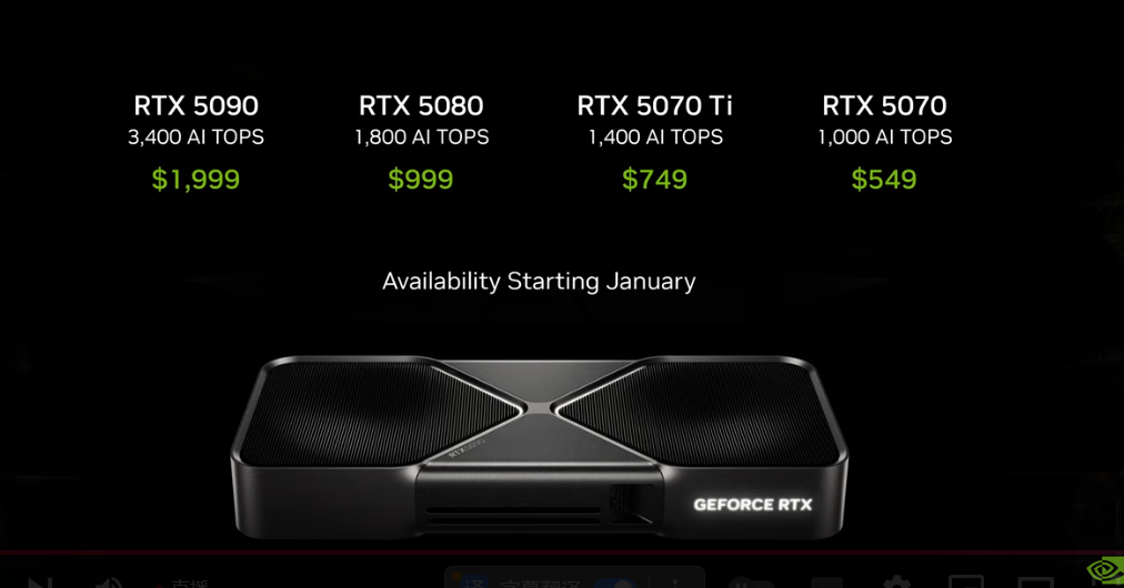 黄仁勋推出英伟达最新的基于Blackwell的GeForce RTX 系列显卡5000系列,价格在549美元到1999美元之间。
