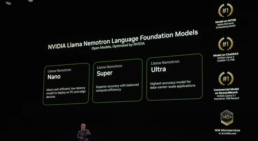 黄仁勋推出Llama Nemotron语言基础模型,分为Nano、Super和Ultra三档。