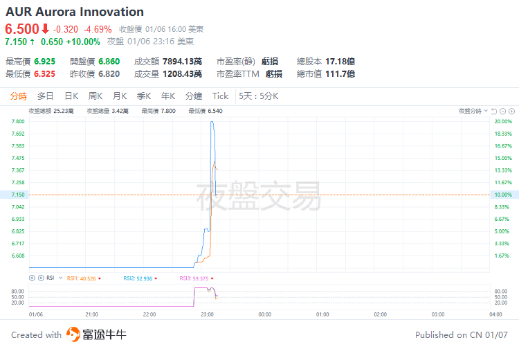 黄仁勋称Aurora、Continental和英伟达合作大规模部署无人驾驶卡车。 $Aurora Innovation (AUR.US)$ 美股夜盘涨幅一度扩大至20%,现涨10%。
