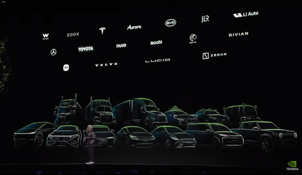 黄仁勋公布英伟达在汽车领域开展合作的厂商,其中国内车厂包括比亚迪、理想、小米、极氪。