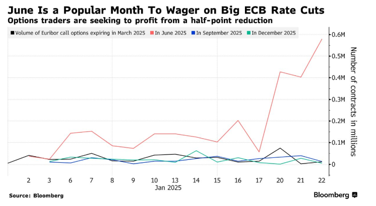 根据彭博社汇编的数据,这些押注主要集中在与3个月期欧洲银行间同业拆借利率(Euribor)挂钩的期权上,这些期权将于今年6月到期,其需求并自今年年初以来迅速增加。