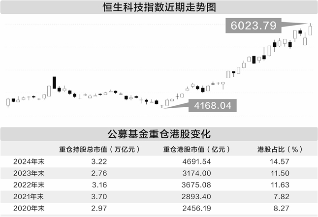 数据显示,无论是公募基金重仓持有的港股标的市值,还是港股在公募基金重仓股中所占的权重,都创了历史纪录。