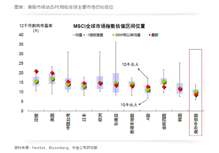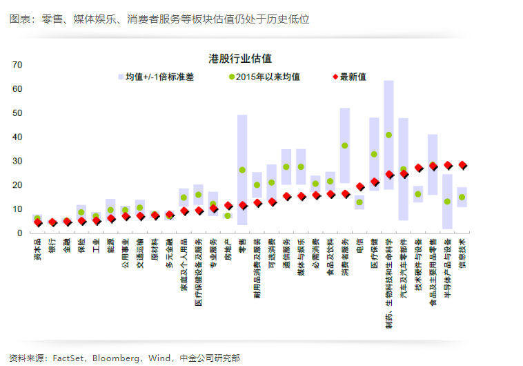 因此静态来看,不论是横向对比其他资产和市场,还是纵向对比历史趋势,即使是在港股市场板块和个股内部,港股当前估值仍处于历史区间的较低水平。
