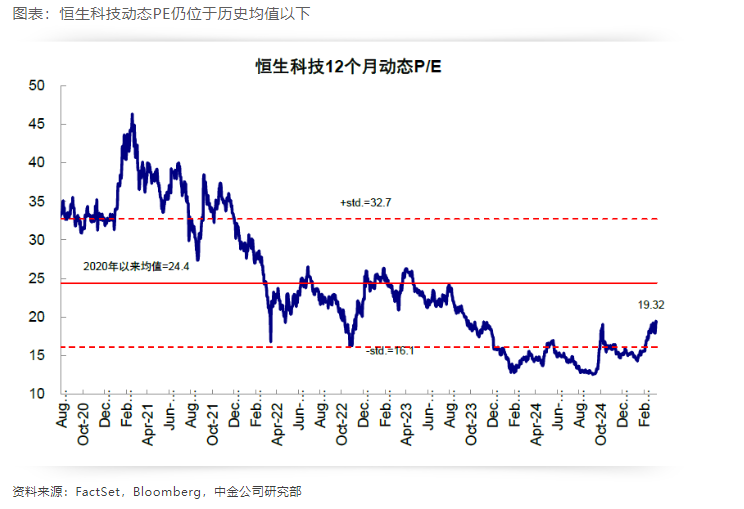 中金维持继续维持短期恒指23,000-24,000,乐观情形25,000的点位测算。需要说明的是,这样一个静态的测算,并不意味着触及后一定会大跌,也不意味着在短期资金和情绪助推下不会突破,但意味着在长期预期无法兑现之前,对乐观情绪的不断透支,也意味着市场分歧的可能加大。