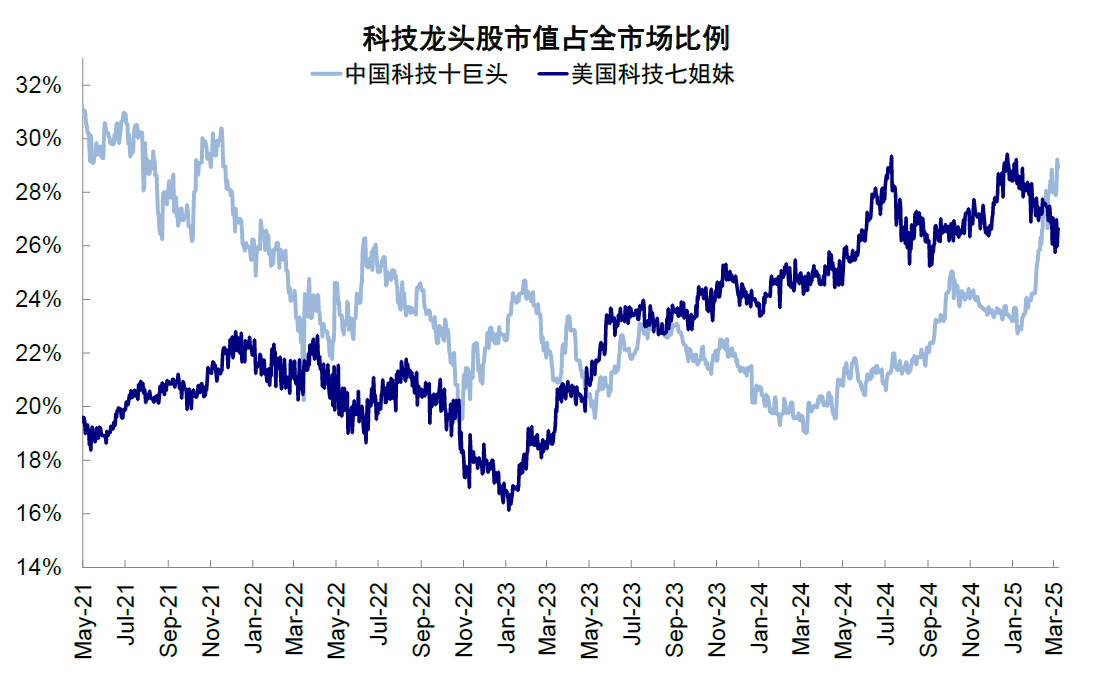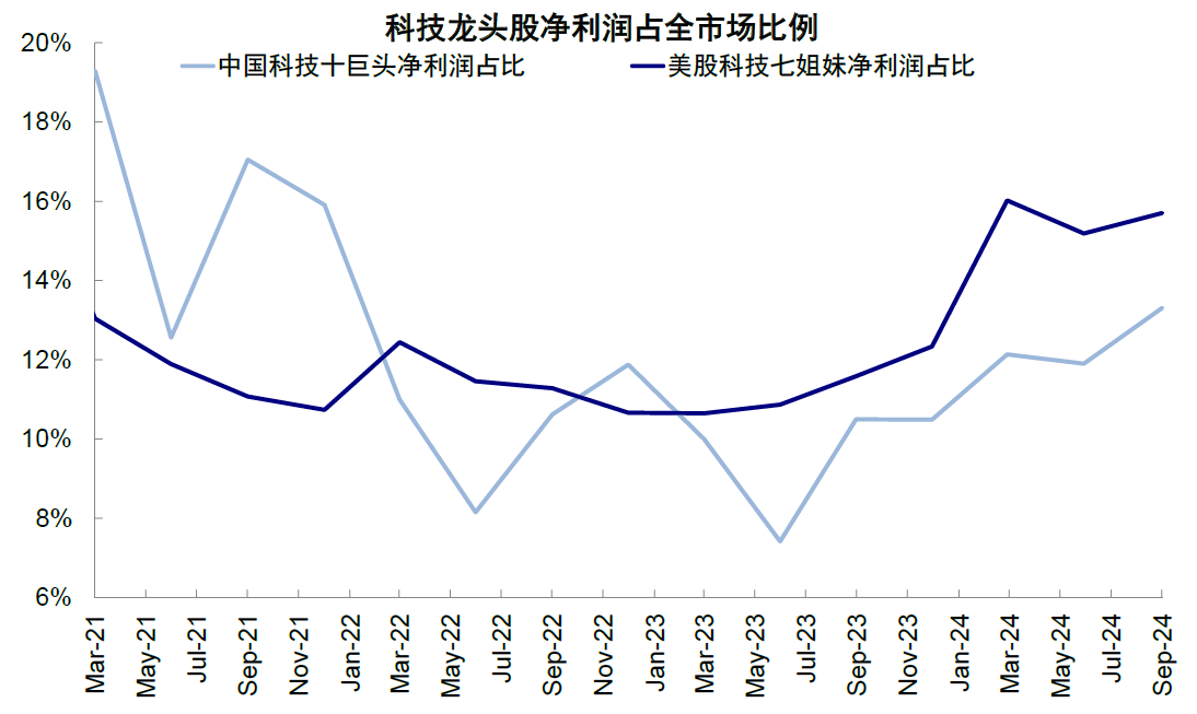 但是,美国科技龙头的高估值有盈利能力作为支撑,这是当前中国科技股较为薄弱的地方,按这一比例看估值已经合理:中国科技龙头流通市值占全部港股的28.9%,高于美国的26.6%,但中国科技龙头净利润占比仅为13.3%,低于美国的15.7%。