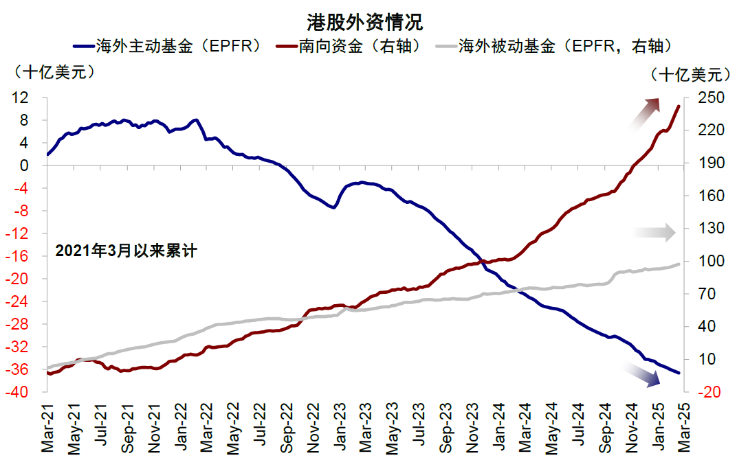2023年底以来,港股已经出现四轮快速反弹后透支回调,但底部不断抬升的现象(2023年底万亿国债、2024年五一地产政策、2024年924行情,2025年初春节后行情),这说明:政策的发力是有效的,因此底部不断抬升,市场即便回调也不至于完全抹去此前跌幅;但市场会线性外推其强度,导致快速冲高后透支回调。因此,应对这种情形,最好的策略就是‘在低位时积极买入,在亢奋时适度获利’,同时更多聚焦于有基本面和产业趋势的结构性行情。