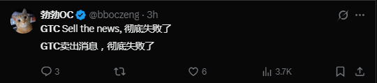 有x网友犀利地指出,对“买传言、卖新闻”这一常见的交易规律来说,英伟达此次没能成功“卖出GTC的新闻”。