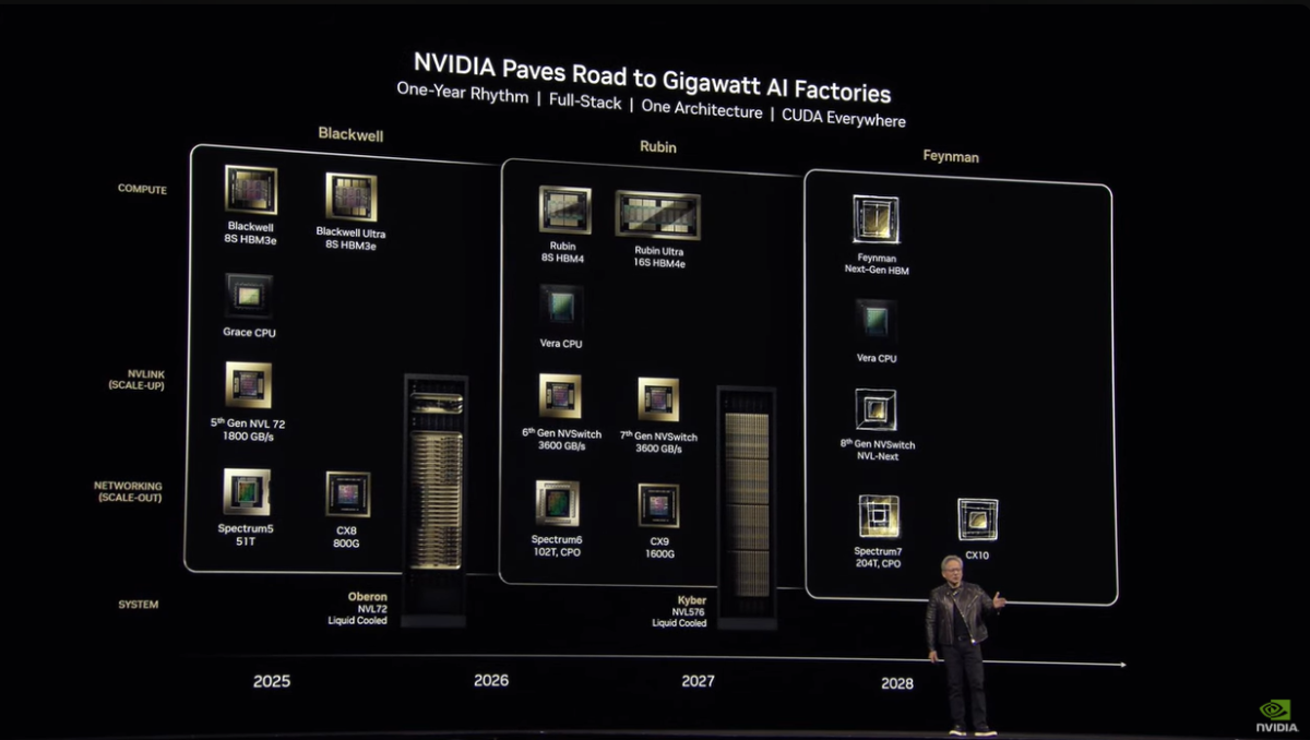 黄仁勋还宣布,Rubin之后的下一代命名Feynman,取自美国知名物理学家理查德·费曼(Richard Feynman)。根据英伟达的路线图,Feynman架构将于2028年登场。