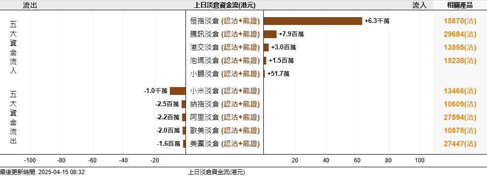 淡仓资金流入前五指数与正股分别是: $恒生指数 (800000.HK)$、 $腾讯控股 (00700.HK)$ 、$香港交易所 (00388.HK)$、 $泡泡玛特 (09992.HK)$、 $小鹏汽车-W (09868.HK)$ 。
