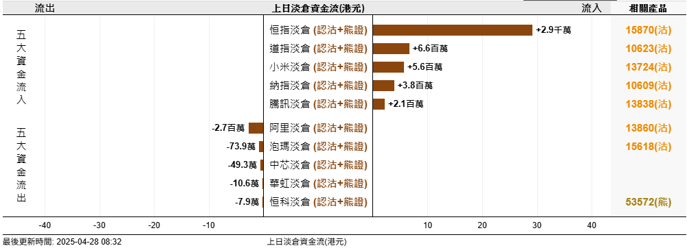 截至4月26日,恒指最新的牛熊街货比例为52:48。