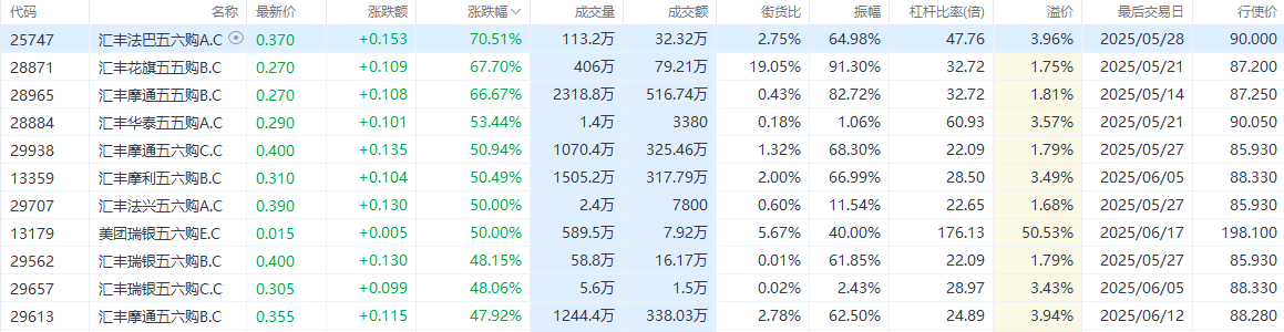 $恒生指数 (800000.HK)$ 连续多日震荡,牛熊证赚钱难度上升。昨日 $汇丰控股 (00005.HK)$ 午间发布超预期Q1业绩,并宣布回购不超过30亿美元股票,多张认购证涨幅居前。