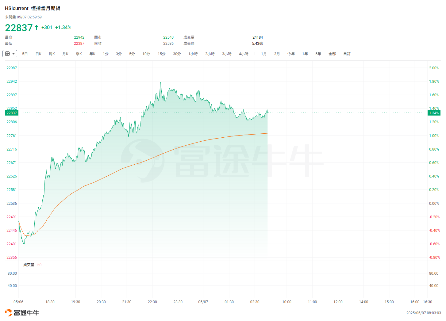 昨日,港股三大指数涨跌不一,$恒生指数 (800000.HK)$涨0.7%,收报22662.71点,盘中高见22747.63点,低见22449.16点, $恒生科技指数 (800700.HK)$ 微跌0.09%。夜晚$恒指当月期货 (HSIcurrent.HK)$ 收报22837点,上涨301点或1.34%,高水174点。
