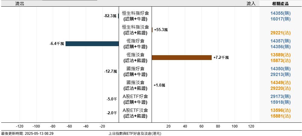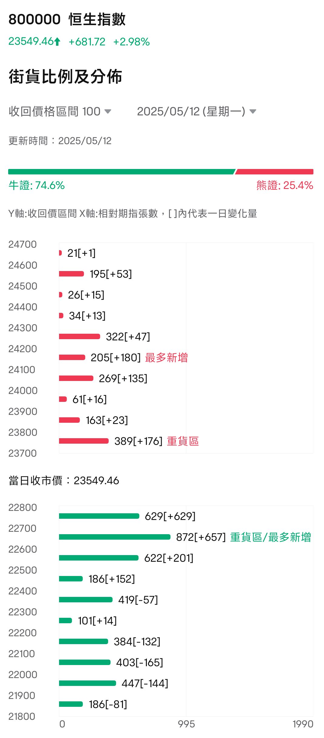 截至5月12日,恒指最新的牛熊街货比例为75:25。