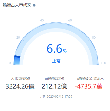 截至周一收市,大市成交3224.26亿港元,所有窝轮牛熊证合计成交212.12亿港元,占大市成交6.6%,其中好仓占比4%,淡仓占比2.6%。所有轮证资金净流出4735.7万港元。