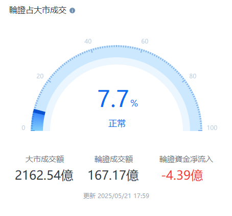 截至昨日收市,大市成交2162.54亿港元,所有窝轮牛熊证合计成交167.17亿港元,占大市成交7.7%,其中好仓占比4.8%,淡仓占比2.9%。所有轮证资金净流出4.39亿港元。