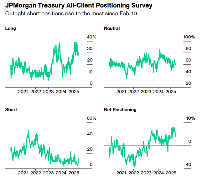 这种不确定性在期权市场同样有所显现:交易员为对冲长期国债期货持续抛售风险所支付的溢价,已高于对冲反弹风险的溢价。