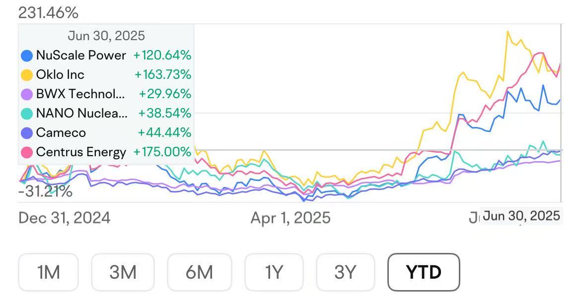 AI耗电量激增下的能源配套:国际能源机构(IEA)报告显示,到2030年全球数据中心用电量将增加一倍以上。核能具有高能量密度和低碳排放的优势,在全球能源转型中扮演着越来越重要的角色,同时IRA法案税收抵免推动核能小型模块化反应堆投资, $NuScale Power (SMR.US)$ 、 $Oklo Inc (OKLO.US)$ 等初创企业获资本青睐,作为燃料的铀开采和加工似乎也具有高确定性。
