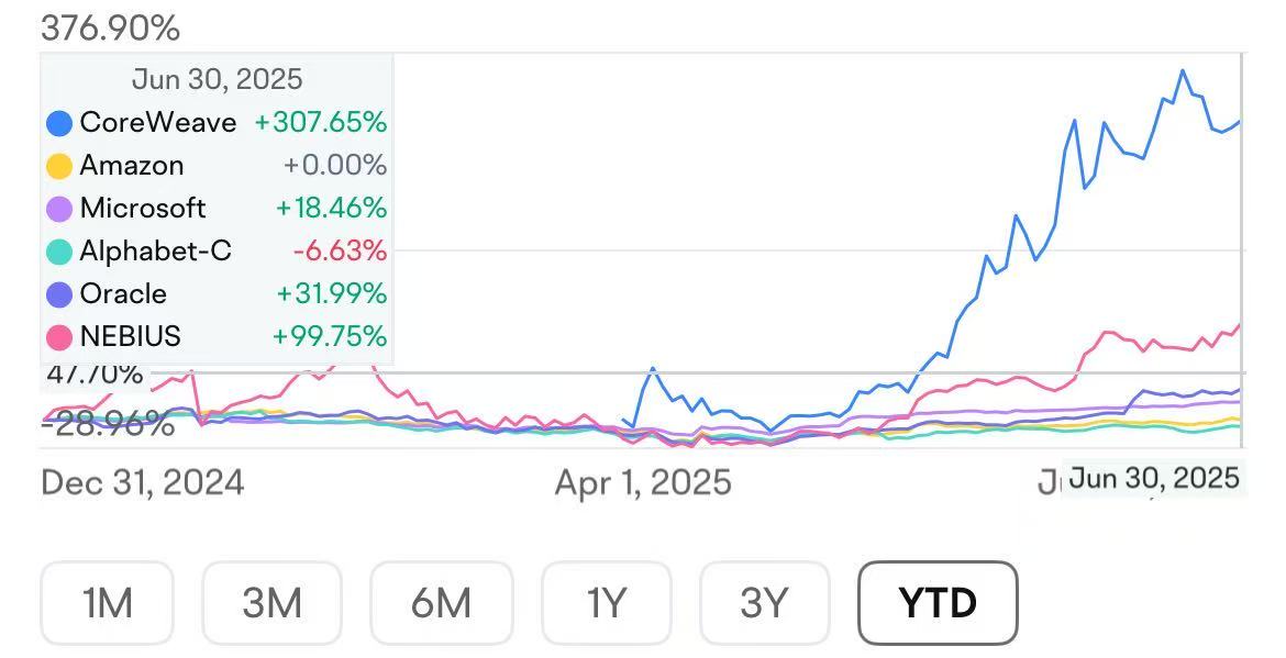 云计算服务商:包括提供AI算力支持的$亚马逊 (AMZN.US)$ AWS、$微软 (MSFT.US)$Azure、谷歌云、$甲骨文 (ORCL.US)$云,以及新兴的$CoreWeave (CRWV.US)$、$NEBIUS (NBIS.US)$ GPU云,以及数据中心解决方案提供商,如相对成熟Equinix、Digital Realty,以及专精于数字货币挖掘或AI数据中心托管的$Applied Digital (APLD.US)$、$Galaxy Digital (GLXY.US)$等。