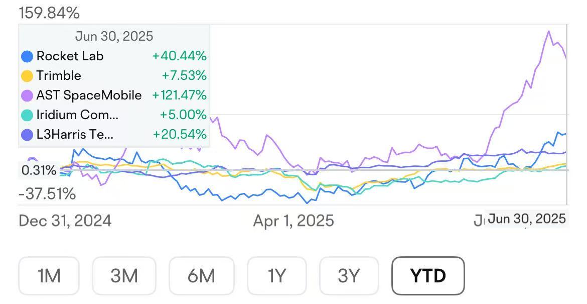 卫星通信方面,低地球轨道(LEO)卫星星座的部署和运营是当前太空领域最热门的投资方向之一。这些星座旨在提供全球互联网接入、物联网(IoT)连接、高精度定位等服务, 将极大地改变全球通信格局。相关公司包括卫星制造商、运营商以及地面设备提供商。 SpaceX6月宣布已生产1000万个卫星,星链订阅用户突破600万;ASTS公司已发射5颗Block 1 BlueBird卫星,计划在2026年底前部署100颗卫星,实现美国全域连续覆盖。