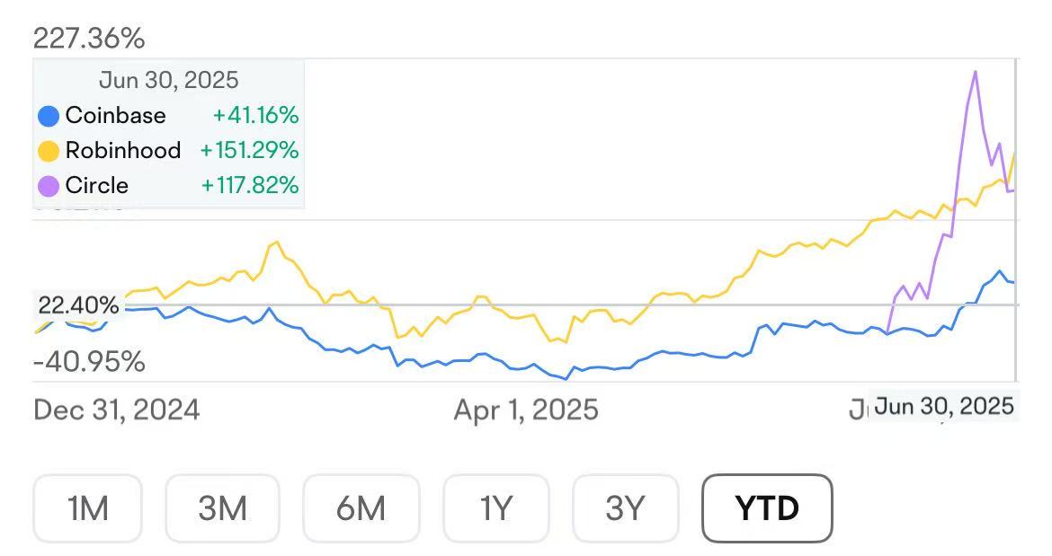 交易所:$Robinhood (HOOD.US)$近期宣布的专注于RWA的Layer2,股票代币化服务,标志着万亿美元传统金融市场(债券、期货、保险、房地产等)的数字化重构加速。尽管到6月,RWA市场已飙升至超过240亿美元,主要由私人信贷和美国国债推动,但代币化股票,背后是规模达50万亿美元的上市股票市场,以及更多RWA资产(Michael Saylor在2月曾预测剔除BTC,未来万物上链的新数字经济资产总规模最大会到590万亿美元)的代币化浪潮,都为加密货币交易所提供了巨大的TAM增长潜力。