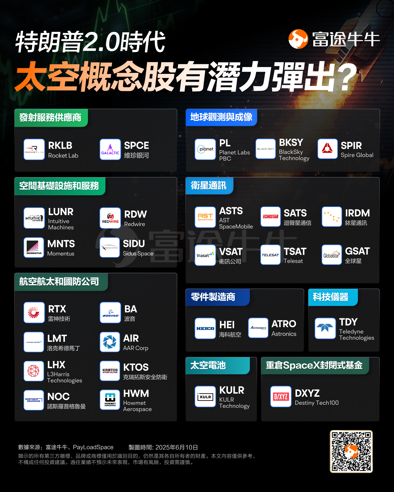 太空板块的投资机会广泛。卫星发射方面,上半年SpaceX完成81次猎鹰9号火箭发射,实现单次发射成本低于500万美元,完成在轨推进剂转移试验,为载人登月铺路;$Rocket Lab (RKLB.US)$的Electron火箭上半年完成 67次成功发射,创公司历史新高,为美国发射频次第二,随着卫星部署需求的增加,火箭制造和发射服务提供商将持续受益。