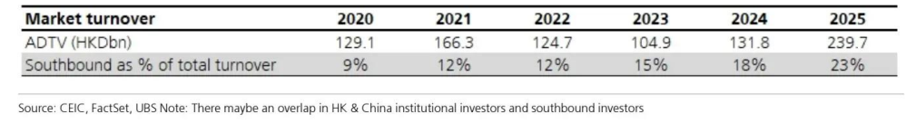 3)瑞银对港股和中国股市整体维持正面看法,并认为鉴于具有吸引力的估值(尤其是与人工智能相关的科技股),“逢低买入” 将获得有力支撑,这可能吸引南向资金流入(尽管低于上半年)和潜在的外资流入。