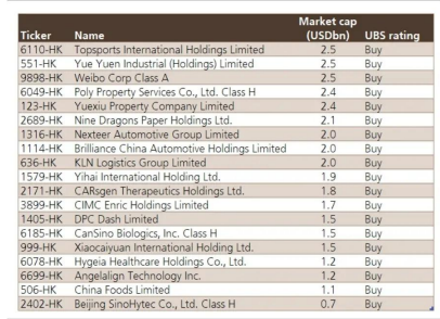 在香港市场,瑞银还看到小盘股存在价值,因为近几个月南向投资者对其关注度有所上升,且过去 5 年 A 股小盘股的表现显著优于港股小盘股。瑞银在图 72 中提供了瑞银覆盖的评级为买入的中小盘股名单。