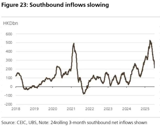 瑞银对港股和中国股市整体维持正面看法,并认为鉴于具有吸引力的估值(尤其是与人工智能相关的科技股),“逢低买入” 将获得有力支撑,这可能吸引南向资金流入(尽管低于上半年)和潜在的外资流入。